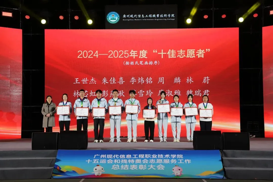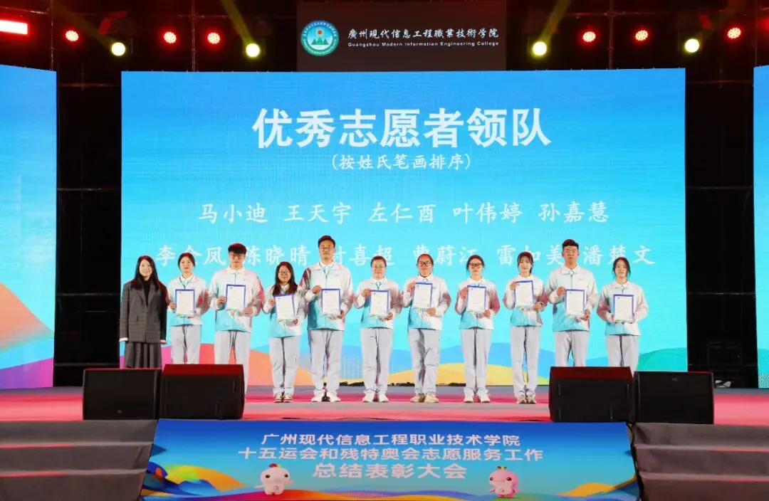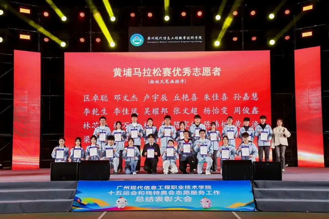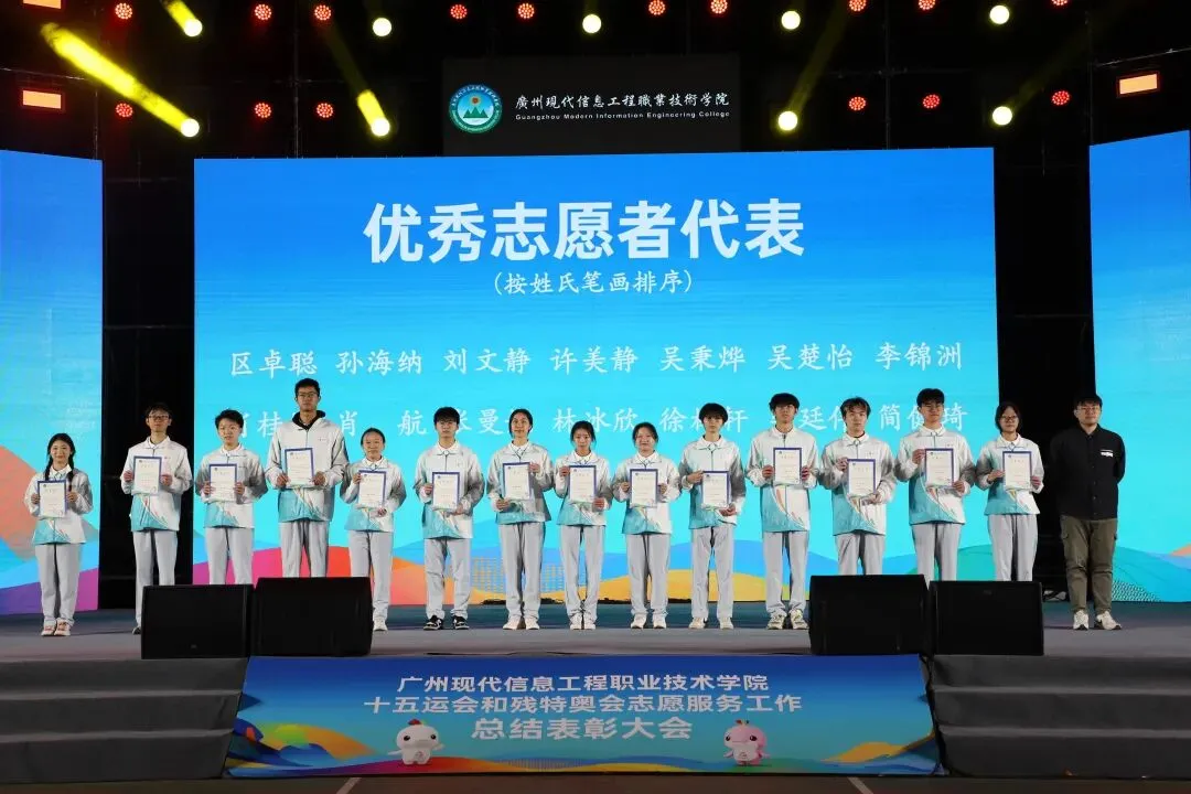 1月7日,广州现代信息工程职业技术学院十五运会和残特奥会志愿服务工作总结表彰大会在学校运动场顺利举行,全面回顾学校在赛事志愿服务中的工作成果,表彰在志愿服务中表现突出的个人,凝聚志愿力量,传承奉献精神。共青团广州市天河区委员会副书记李梦溪,学校党委书记朱灿焕,党委委员、副校长李中庆,共青团广州市天河区委员会一级科员雷潇宇、广州市黄埔区青年志愿者协会副会长兼秘书长林转娜出席大会,相关职能部门负责人、各学院师生、志愿者代表等1000余人参加大会。