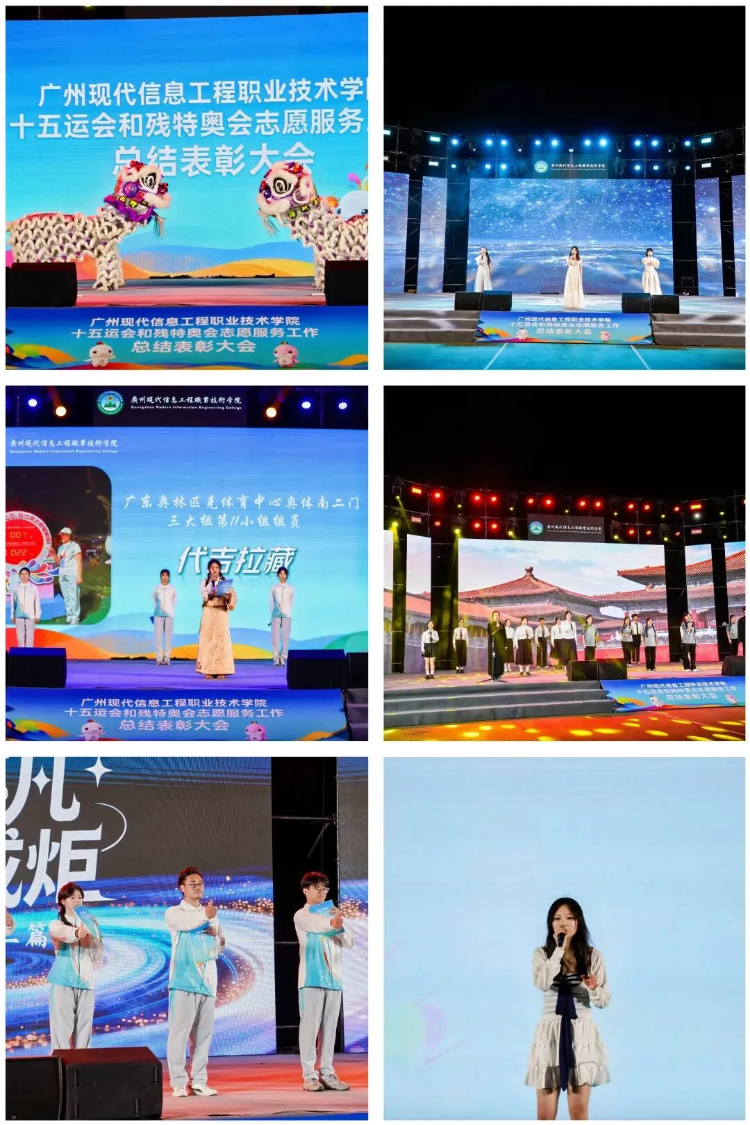 大会通过视频回顾、歌舞表演、情景讲述等多元形式,重现了志愿者们在十五运会和残特奥会期间的忙碌身影与暖心瞬间,一幕幕坚守与付出的画面,让在场人员深受触动。学校对在十五运会和残特奥会志愿服务中涌现出的优秀师生进行表彰,授予优秀志愿者领队师生共计26名、优秀志愿者135名。与会嘉宾为获奖代表颁发了奖状,以激励全体师生以先进为榜样,积极投身志愿服务事业。