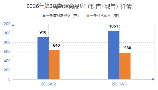 根据深圳市房地产信息平台数据,2026年第3周全市新建商品房成交1051套,环比增长14.5%,市场活跃度明显提升。