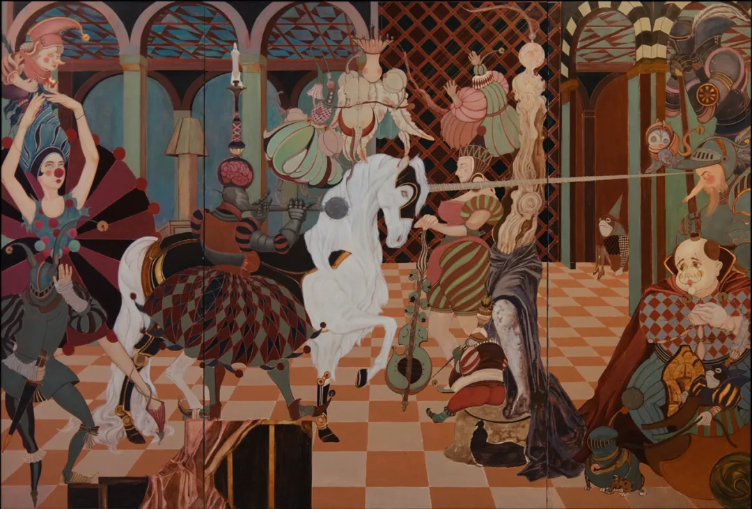 同时亮相的,还有詹佶昂的巨幅中国画《竹林七贤》。
