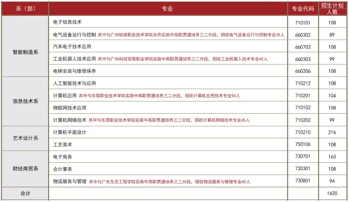 结合当地企业及IT产业发展的需求,学校坚持品牌专业建设,开设有电子信息技术、电气设备运行与控制、汽车电子技术应用、工业机器人技术应用、电梯安装与维修保养、人工智能技术与应用、计算机应用、计算机平面设计、计算机网络技术、物联网技术应用、工艺美术、电子商务、会计事务、物流服务与管理等14个专业。其中电气设备运行与控制为省重点建设专业,电子信息技术和计算机平面设计是广东省“双精准”示范专业。