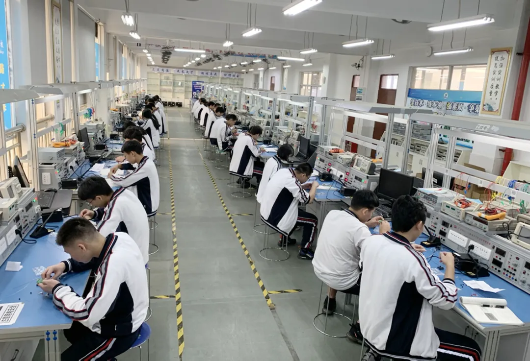 四、实习实训:依托东莞市电子产业协会,东莞市青少年科技协会,并与东莞市中宝华南电子有限公司、盈聚电源有限公司,大研自动化有限公司、旭田电子有限公司等多家企业开展校企合作优先推荐就业,从事电子信息设备、电子产品的装配、调试、维修和检验,智能制造等就业岗位,就业前景广阔。