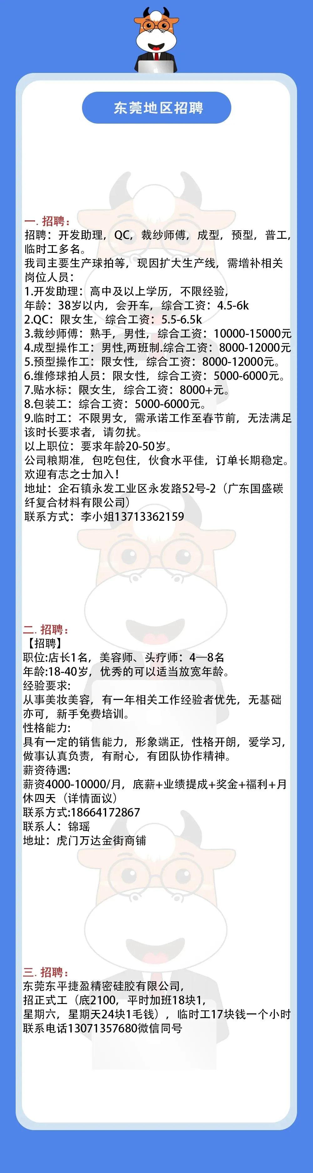 >01.21东莞地区招聘信息!
