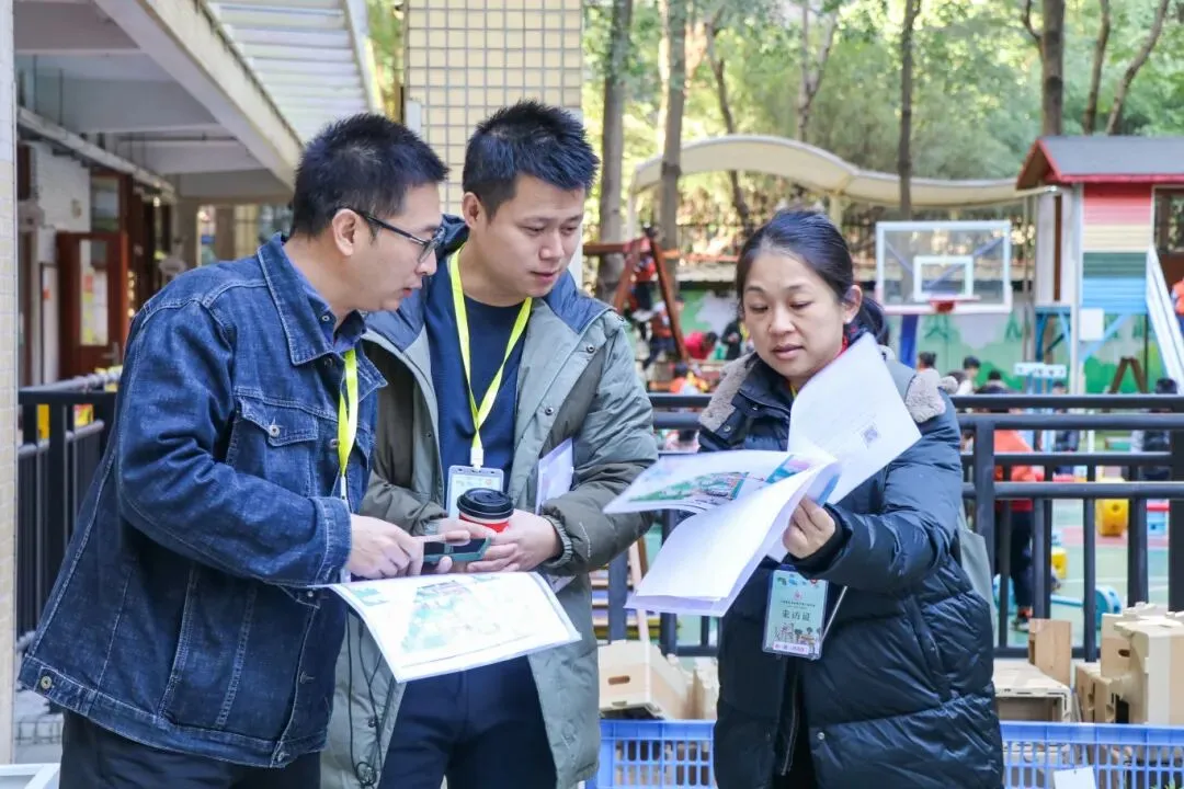 两场活动中,160余名参会人员分别走进金沙第三幼儿园、新市第一幼儿园场地,开展沉浸式半日活动观摩。在金沙第三幼儿园,参会人员深入幼儿园小、中、大各班,依据《班级半日活动观察表》,聚焦“师幼互动、幼幼互动、幼物互动、幼事互动”四大维度,系统跟踪并细致记录幼儿的半日生活环节。通过沉浸式的随班观察,了解幼儿园保教实践的真实样态。在新市第一幼儿园,参会教师分组走进沙水区、建构区、涂鸦区等游戏场地,观察幼儿在自由探索的环境中专注探索、自然合作,感受思维在游戏中的自然生发与流动,体会“环境即教育”“游戏即学习”的理念。