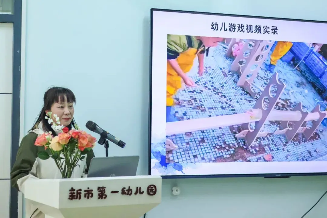 新市第一幼儿园陈秀娟老师以大班沙水区游戏《探秘沙水区的马路》为例,生动还原了幼儿从游戏问题捕捉—视频回溯—集体讨论—策略提出—再实践验证的全过程,体现了教师在思维共享中的“支架者”角色。