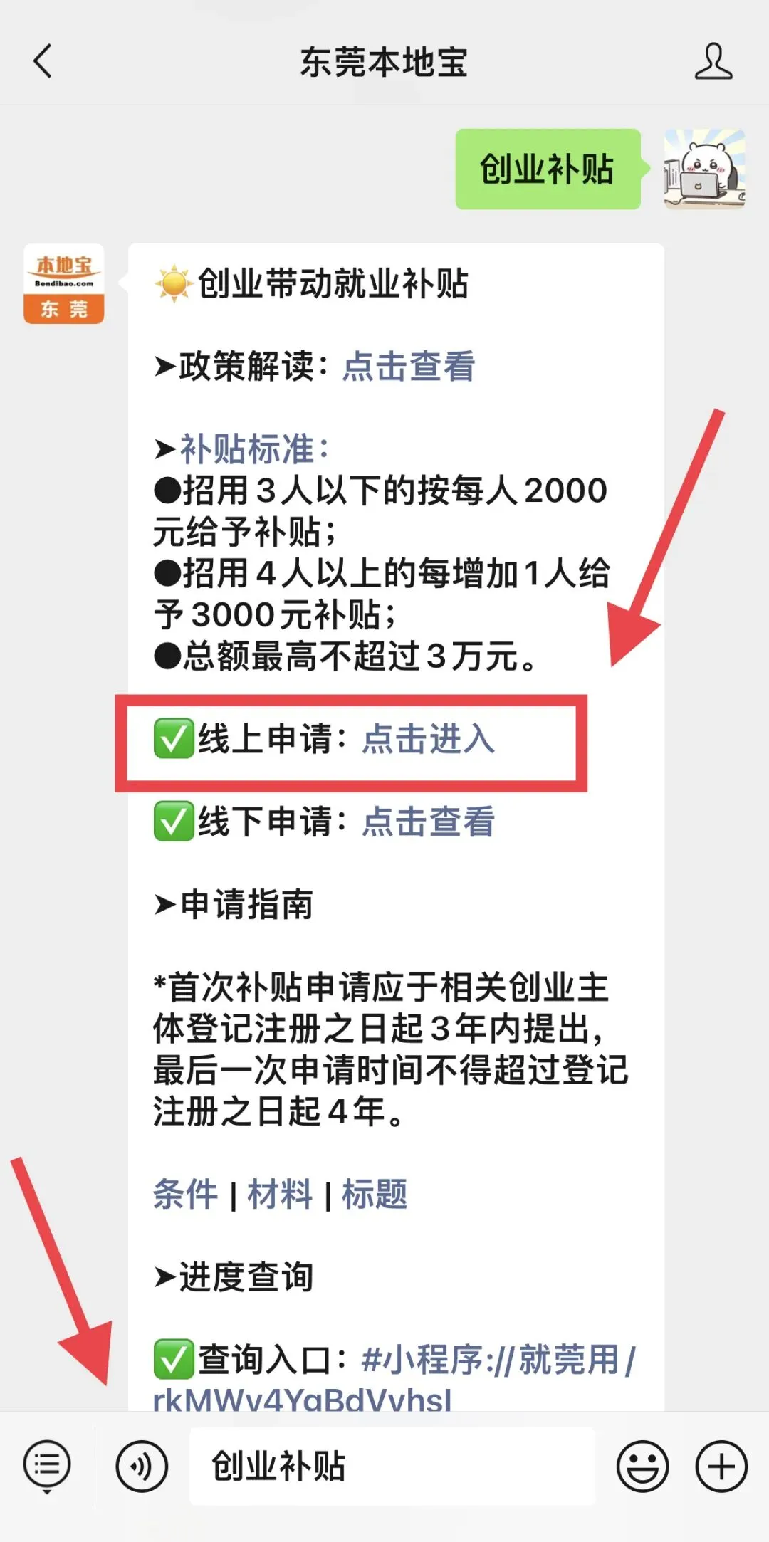 广东公共就业服务云平台,长按识别下方二维码关注东莞本地宝,在聊天对话框回复【创业补贴】,即可获取申请入口+流程!
