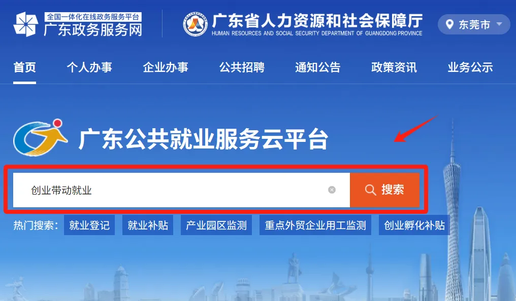 在广东公共就业服务云平台登录后搜索创业带动就业,点击立即办理即可开始办理。