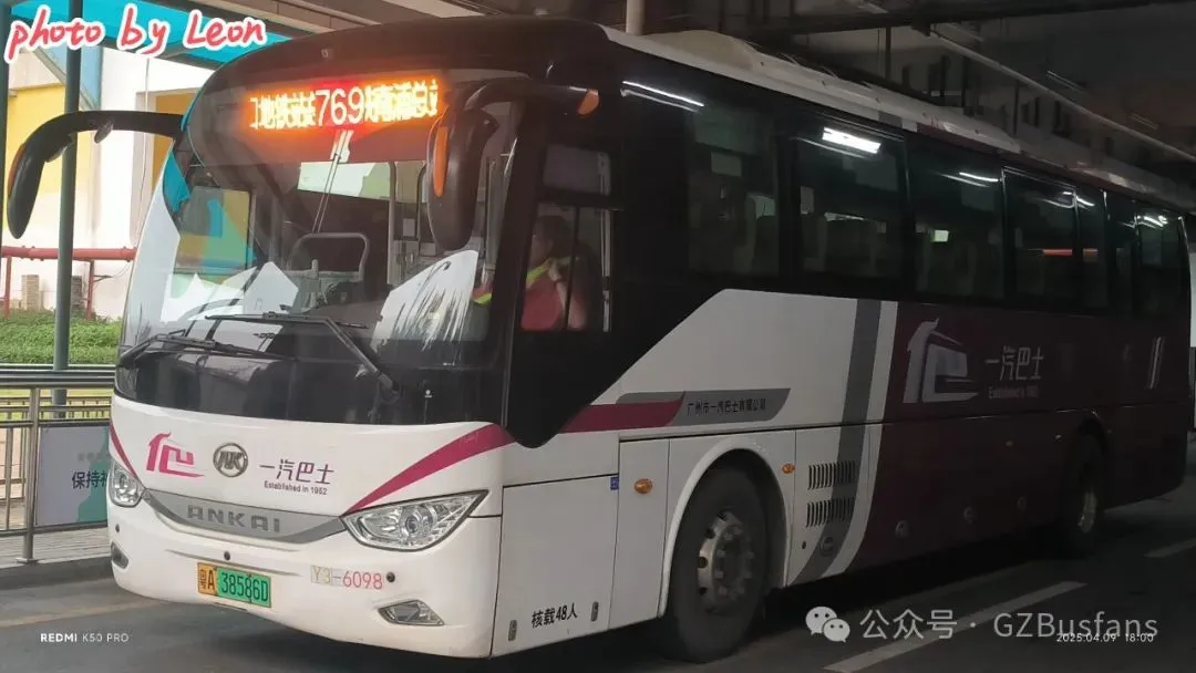 广州一汽巴士安凯HFF6119A6EV21(A611)客车2025年4月9日摄于坑口地铁站总站