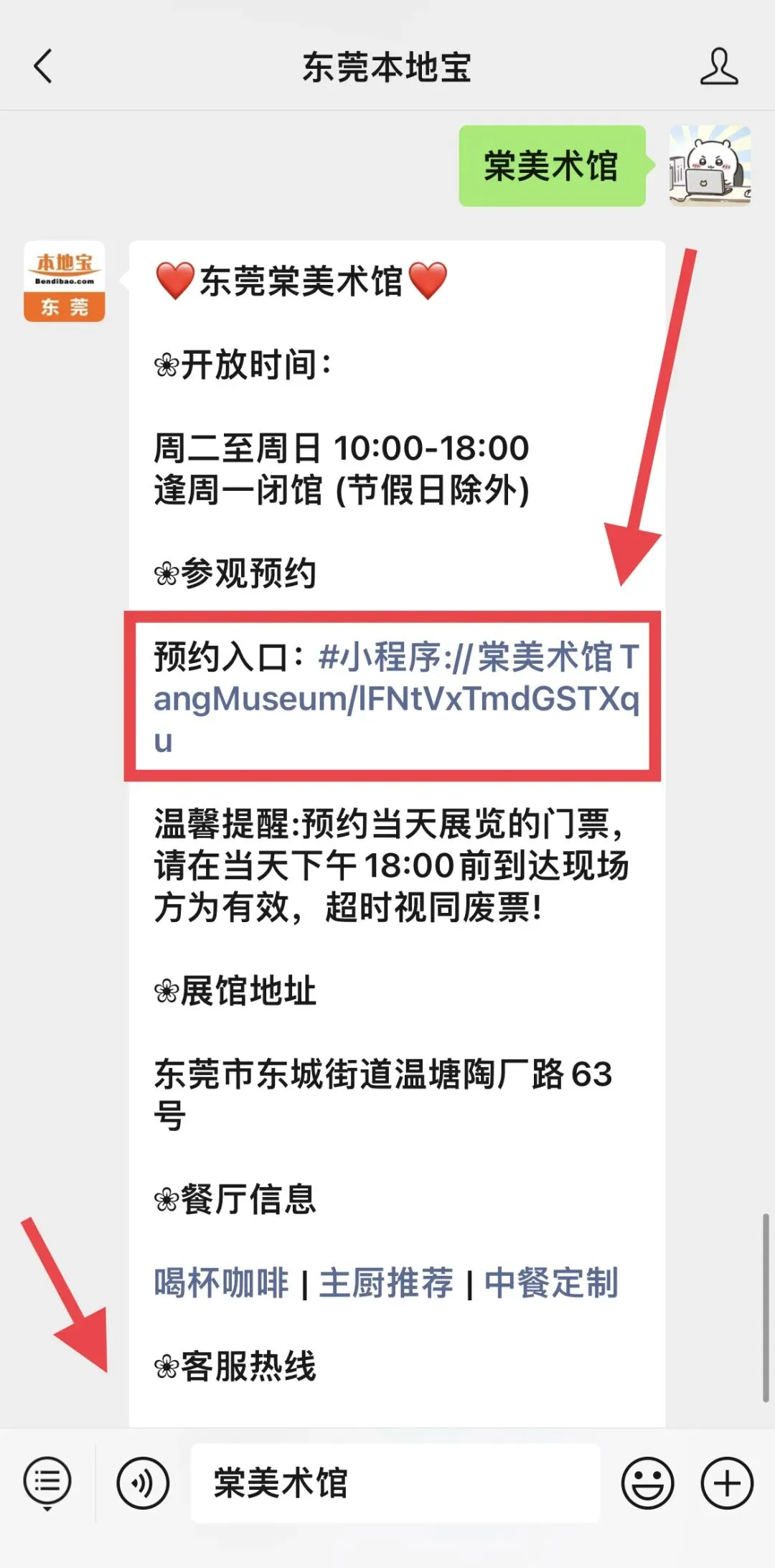 🔗预约入口:棠美术馆官微,长按识别下方二维码关注东莞本地宝,在聊天对话框回复【棠美术馆】,即可获取预约入口!