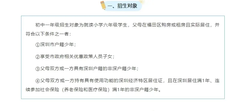 非深户儿童:父母双方或一方持有深圳居住证,且在深圳居住满1年、连续参加社会保险(养老保险和医疗保险同时缴纳)满1年