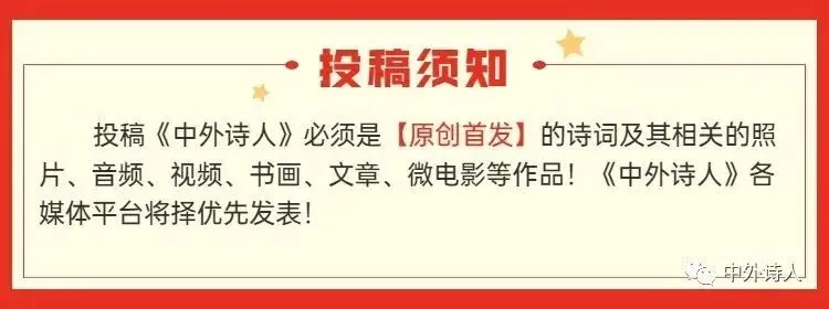 1,凡是关注了《中外诗人》公众号、视频号的作者,第一次投稿“原创首发”诗词(2-4首)作品会优先发表(投稿时请附“关注”的截图)。