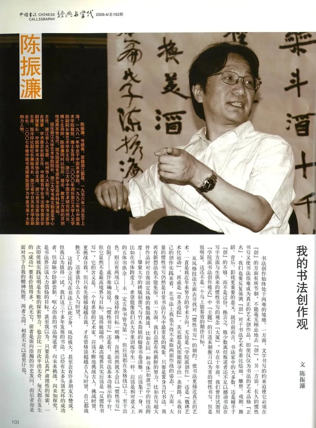 陈振濂先生是当代中国书坛中兼具深厚学养与艺术创造力的代表人物。他的书法创作始终贯穿着学者的思辨与艺术家的激情,形成了理论与笔墨相互交融的独特境界。