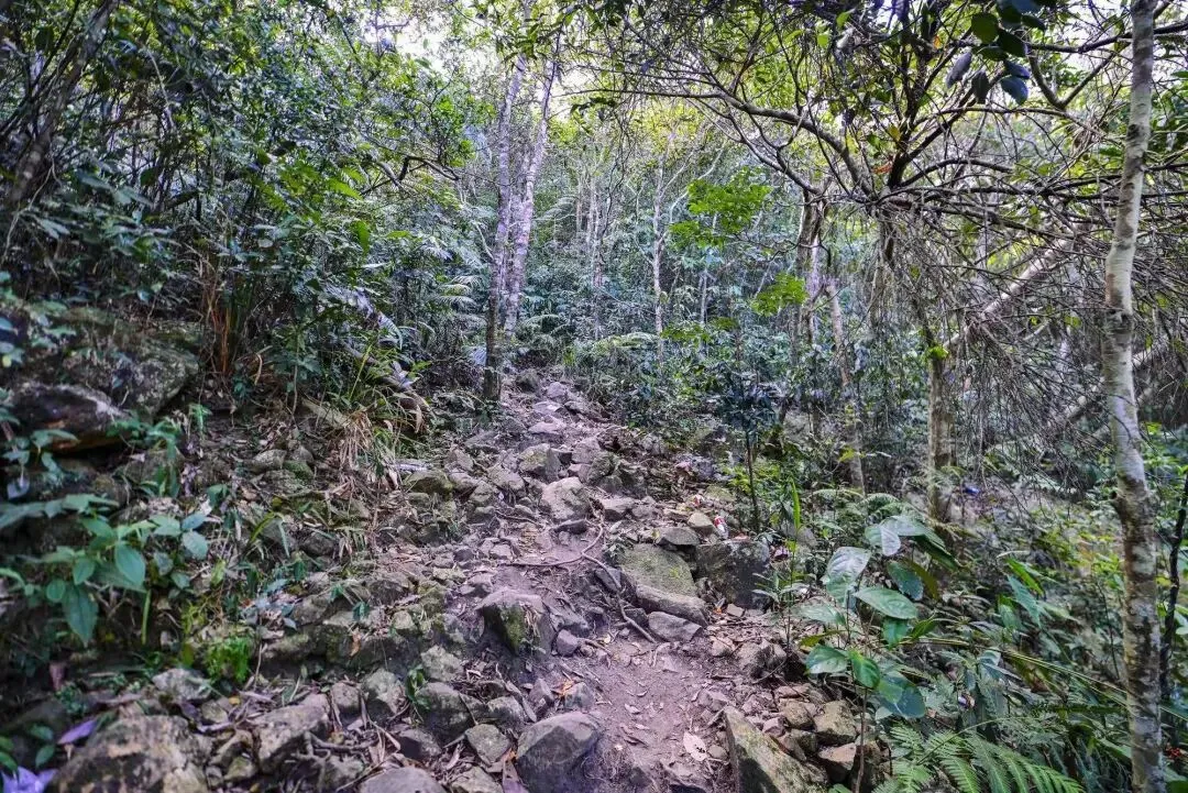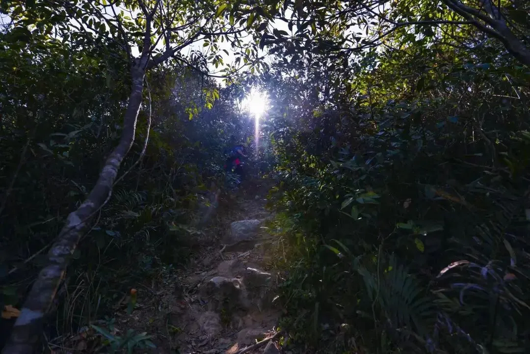 沿着山脊线,穿过丛林,抵达海拔550米左右的山脊,排牙山的山顶遥遥在望。