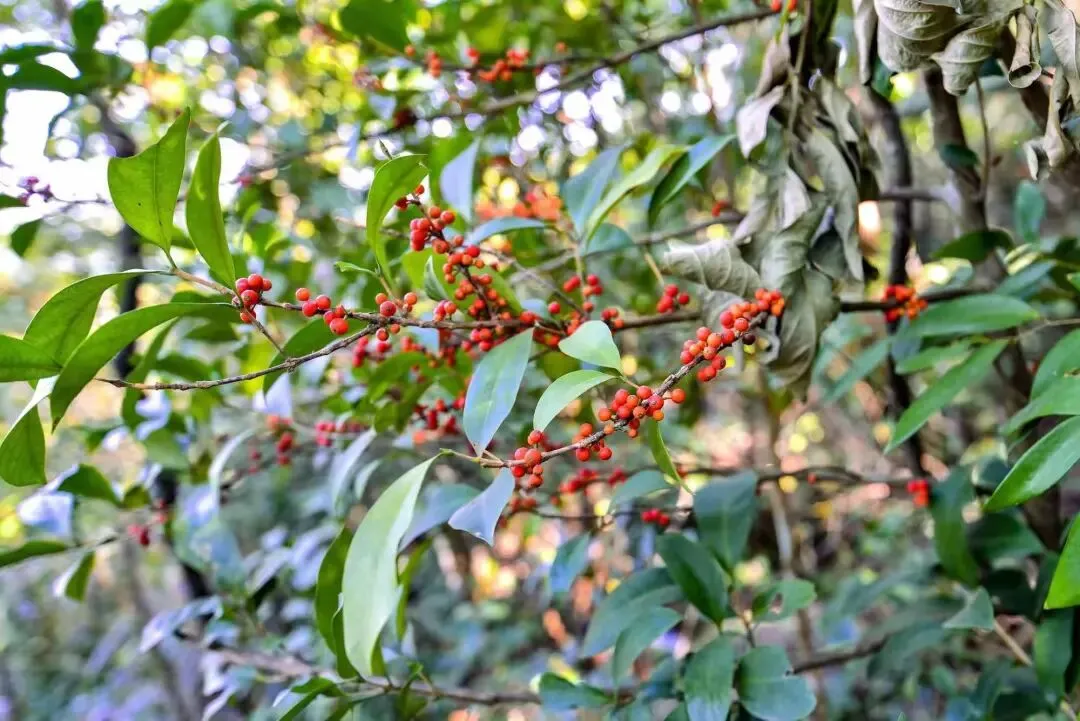红豆生南国,此物最相思。路边的百两金又名山血丹,长出红经的果实,骄艳欲滴。