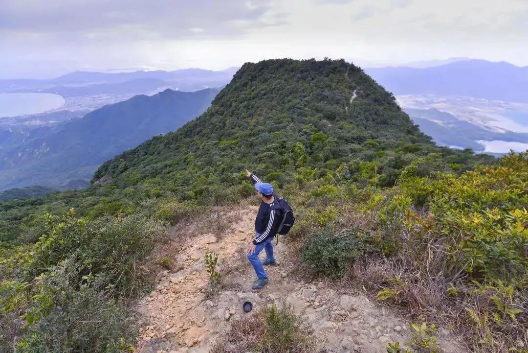 翻越一座山峰,约二十多分钟,便抵达排牙山主峰。707米的海拔,足以让视野挣脱所有束缚,北面澳头港的轮廓清晰可见。