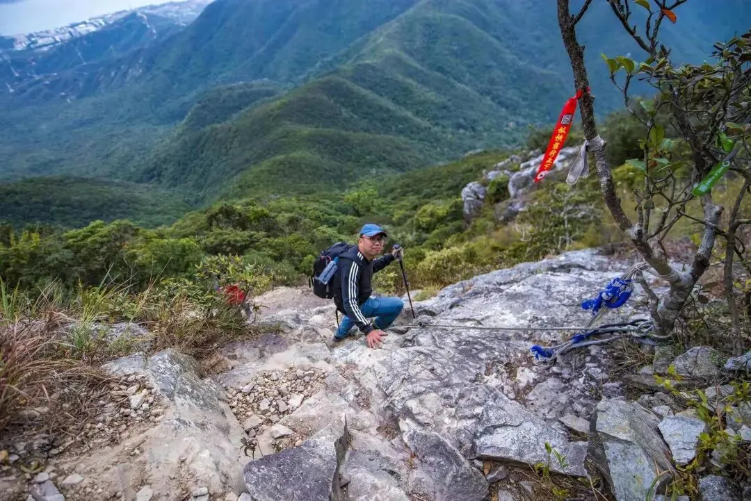 向上攀爬,每一步都需格外谨慎。身旁是丛生的荆棘,时时要弯腰钻过密林与灌木丛,脚下是松动的碎石,时刻要保持警惕。