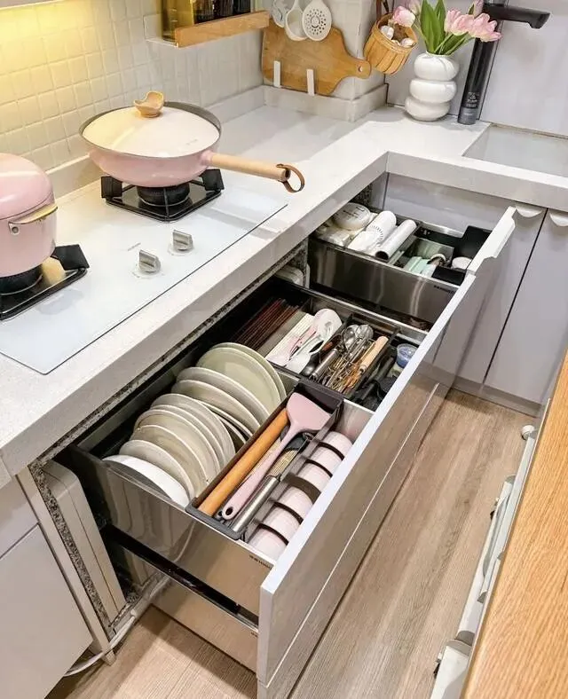 橱柜第一层装拉篮放碗盘 , 第二层拉篮放锅具 , 其他厨具呢?