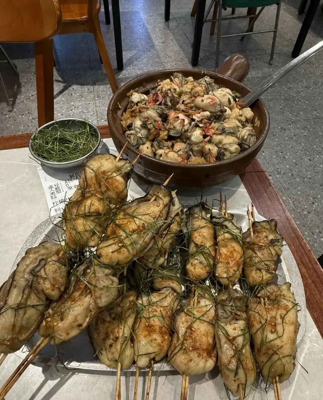 生蚝个头不算特别大 , 但是肉很饱满 , 关键是那个柠檬叶的香气 , 烤的时候渗进去了 , 吃起来有一点点清新的回甘 , 不会觉得腥。