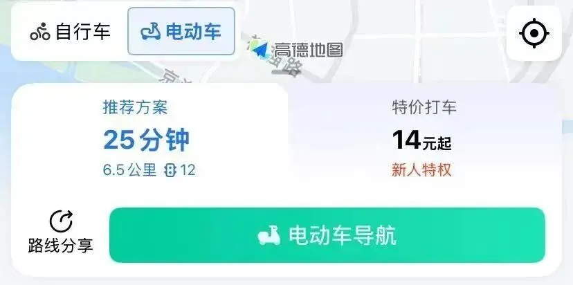 骑行电动车出行前,务必将导航软件切换至“骑行-电动车”模式,该模式会自动规避高速公路、城市快速路、高架隧道等非机动车禁行路段,规划安全路线。