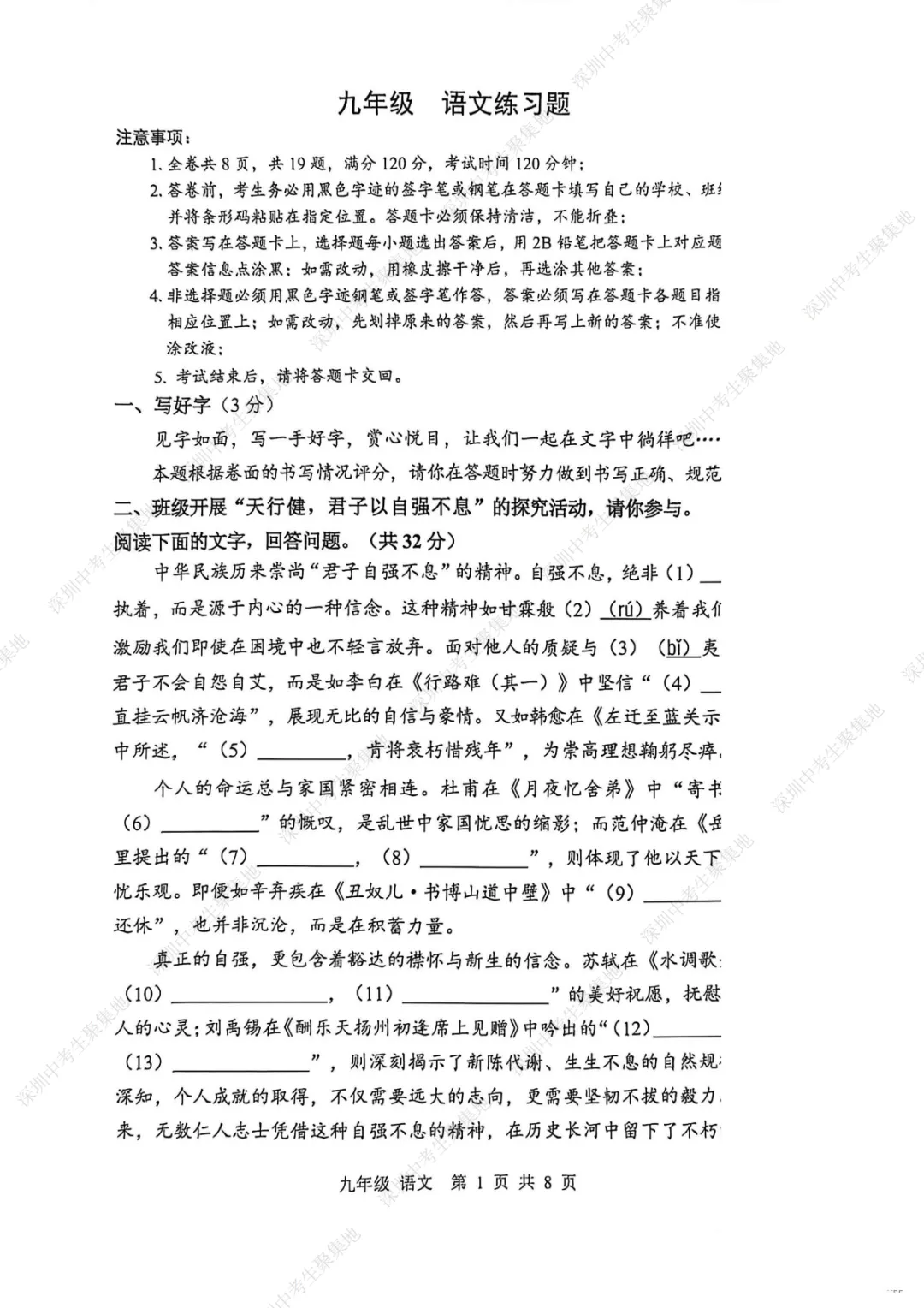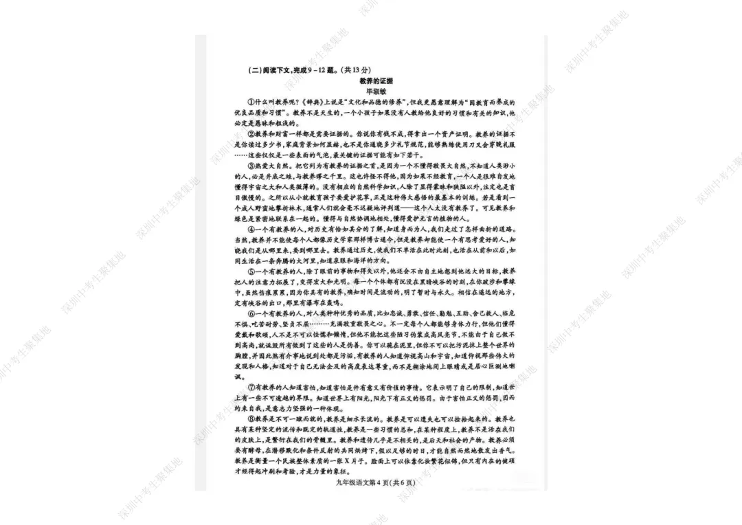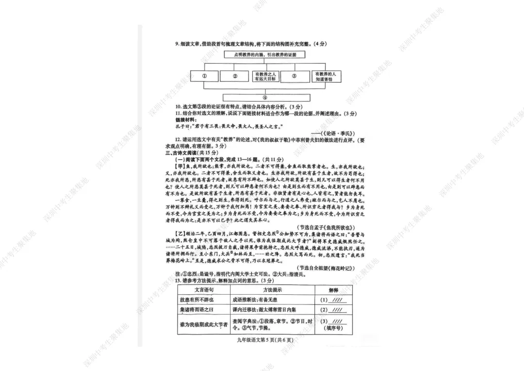 九上期末语文考卷