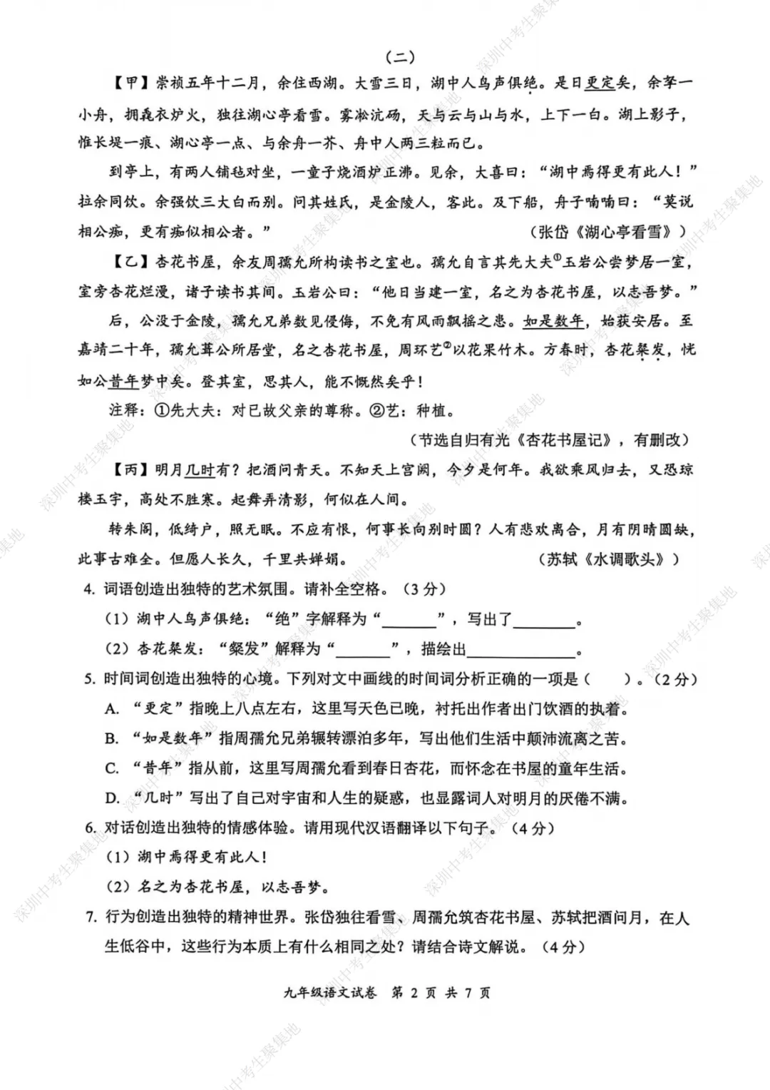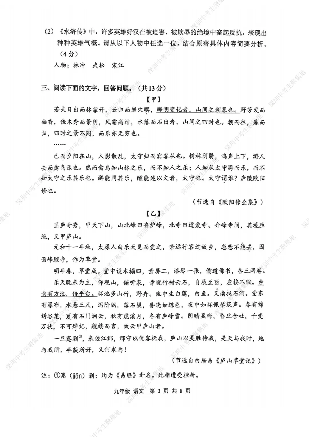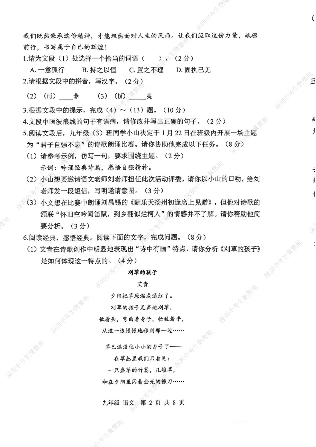 九上期末语文考卷
