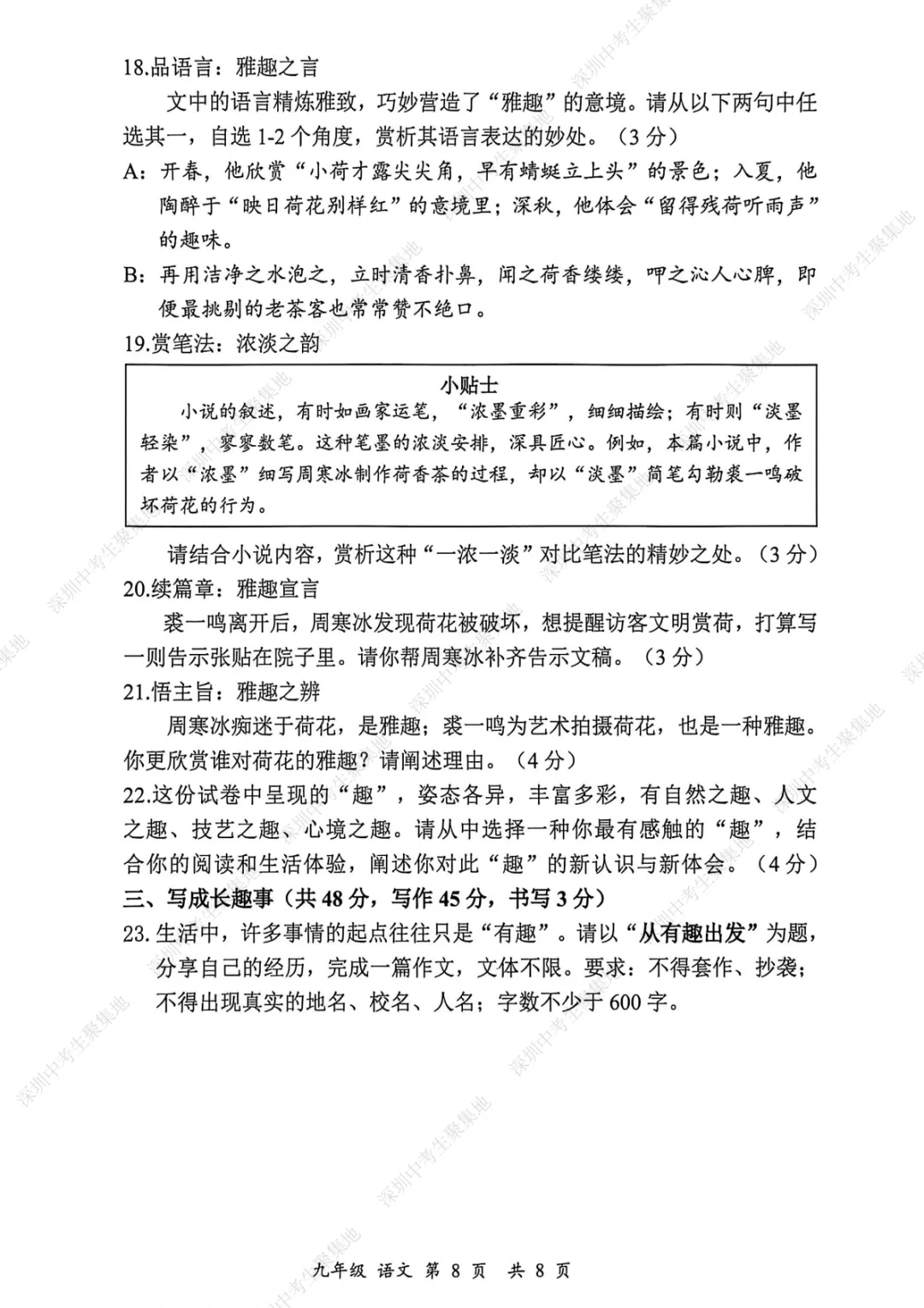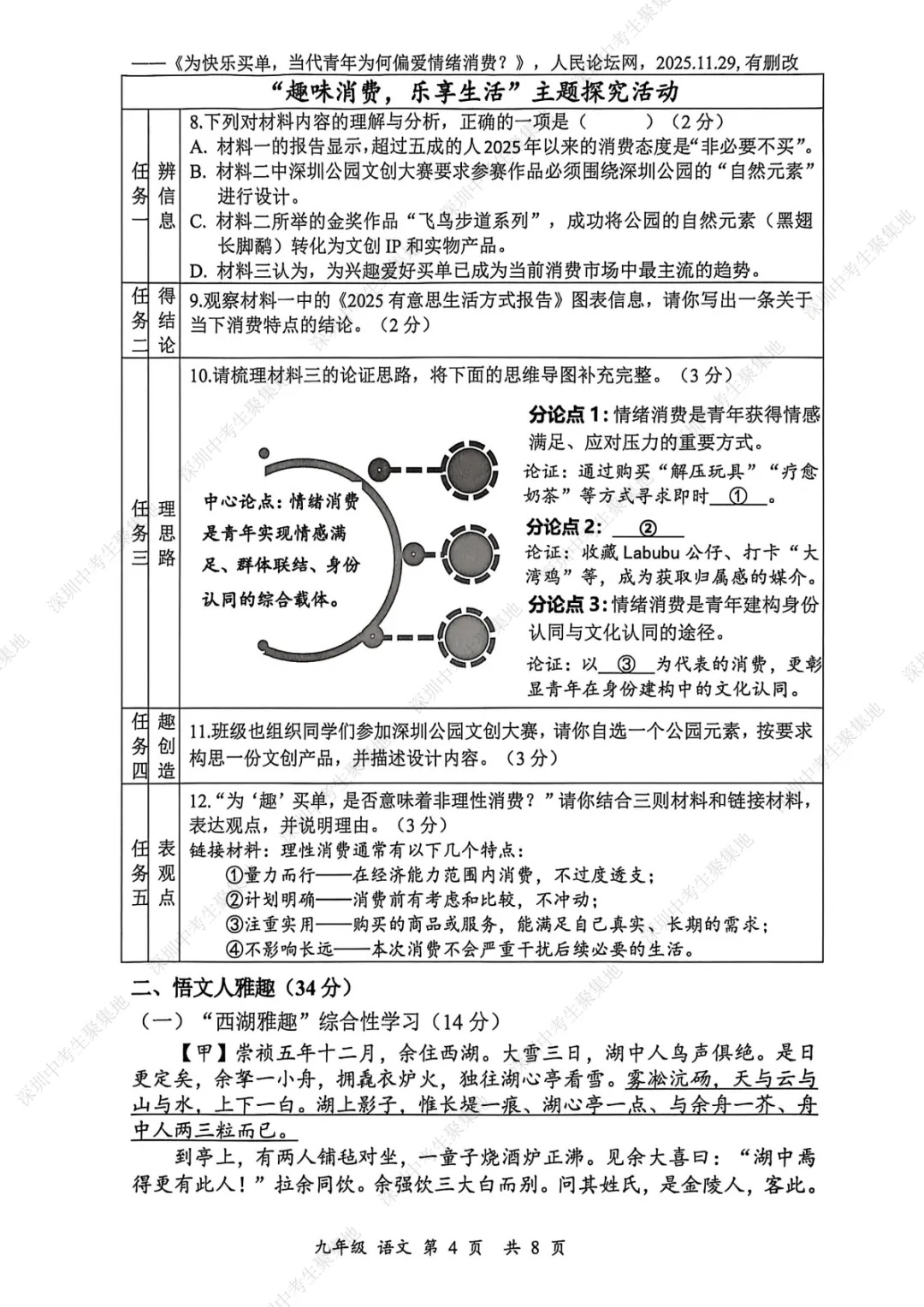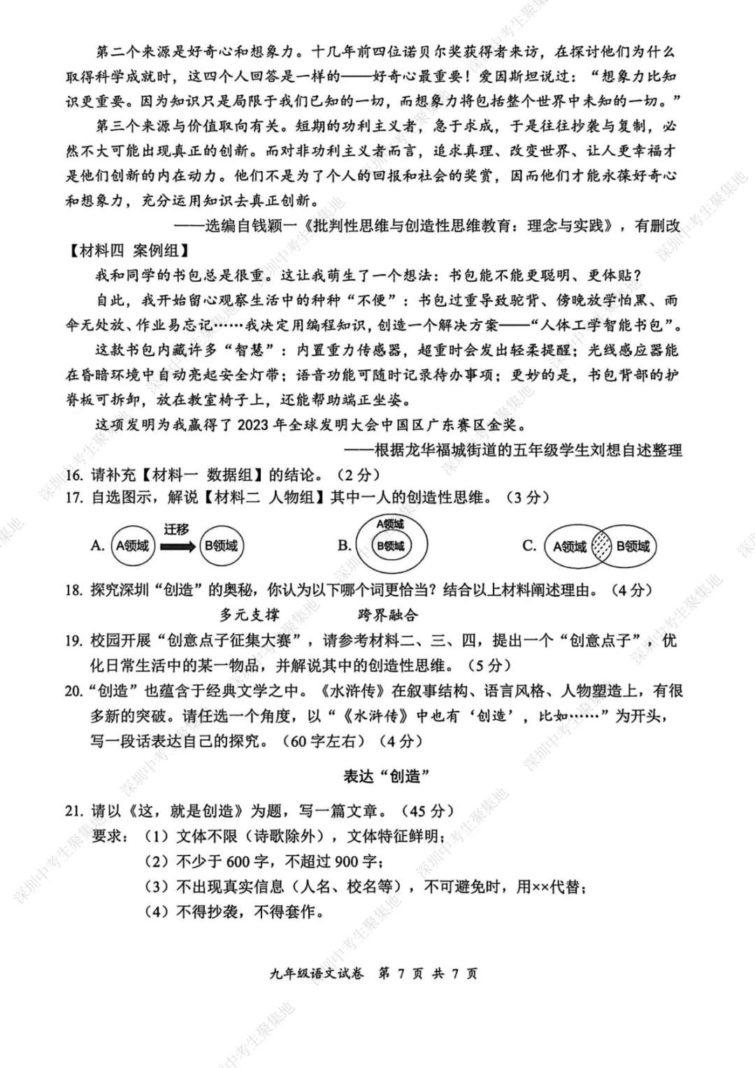 深圳期末考卷