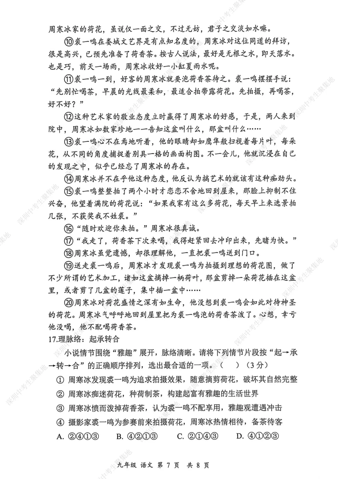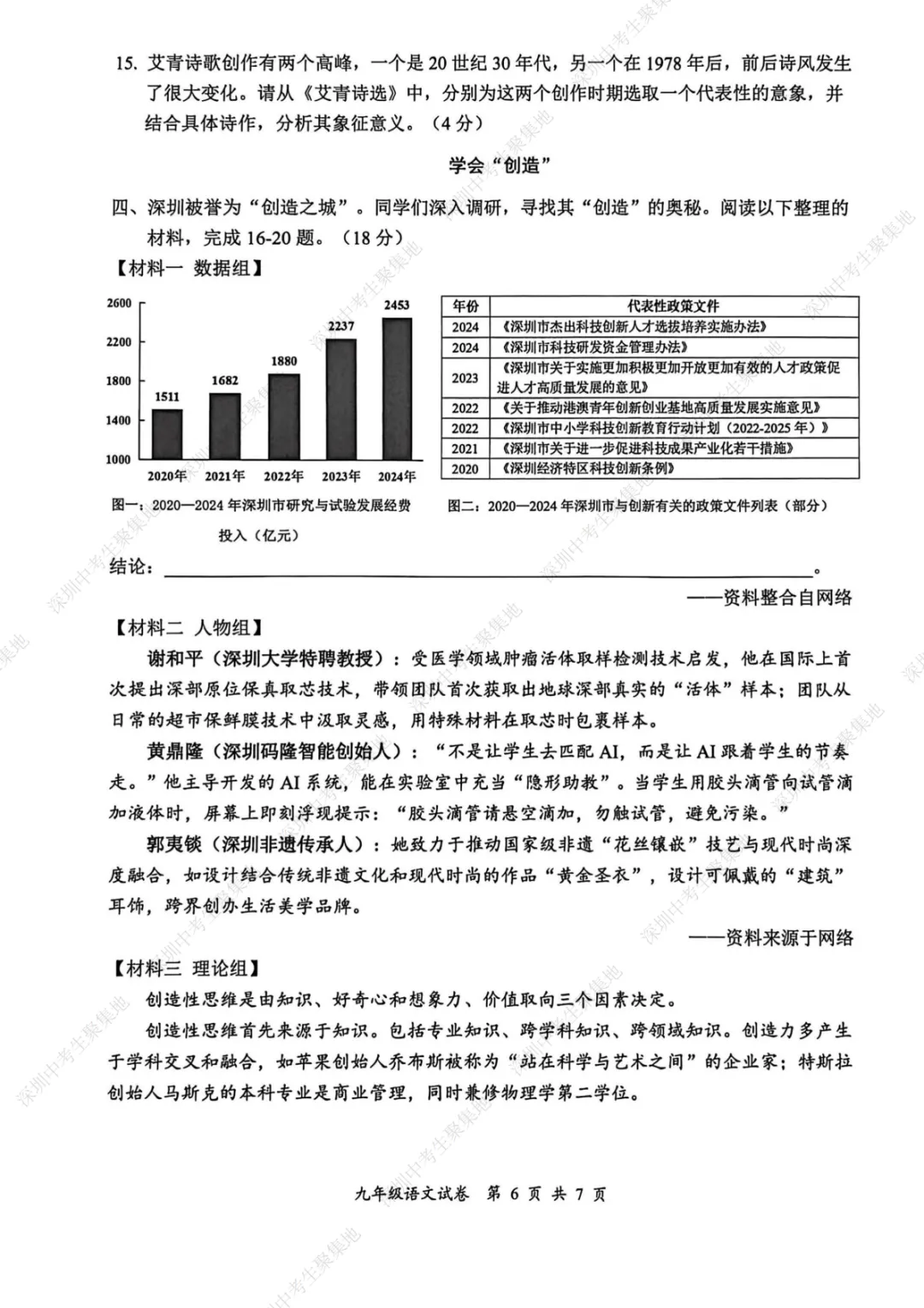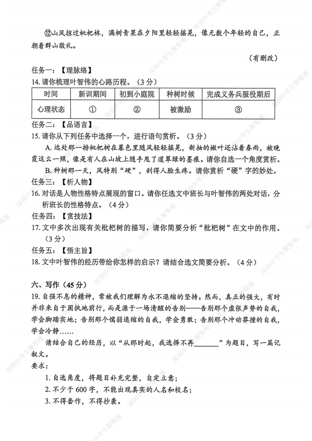 深圳期末考卷