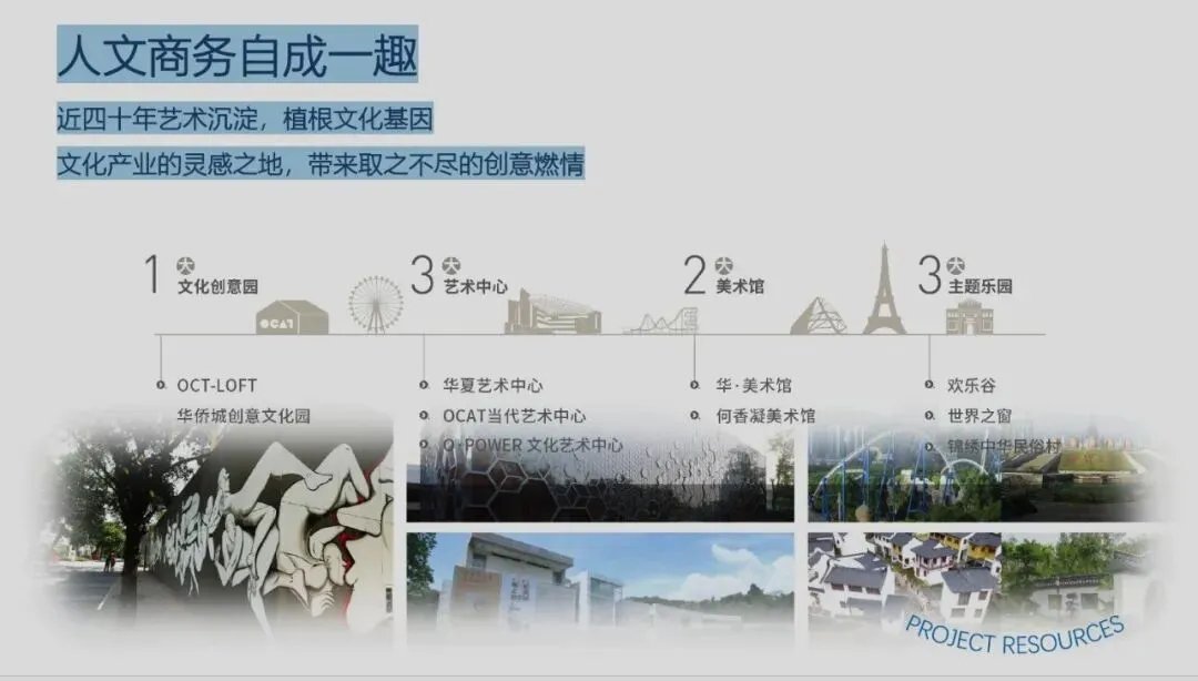 城综合市场、生态广场、美食街、华侨城创意文化园、欢乐时光OCT PARK、
