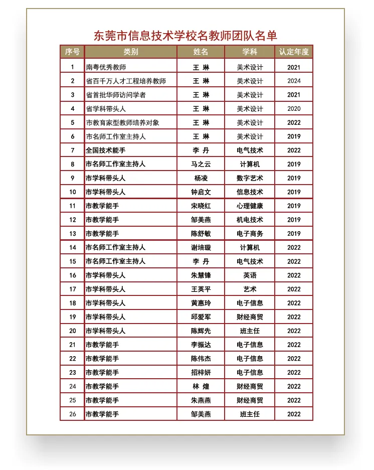 2. 师资队伍:学校重点专业,现有专业教师21人,其中高级教师8人,省“南粤优秀教师”1人,东莞市名师工作室主持人2人,校名师工作室主持人2人,外聘企业导师1人,“双师型”教师达标率100%,师资雄厚。