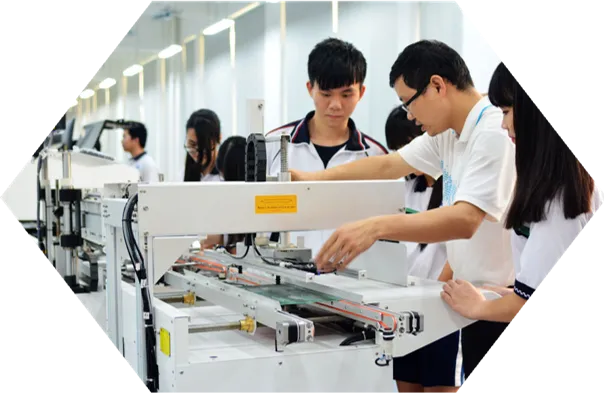 四、实习实训:依托东莞市电子产业协会,东莞市青少年科技协会,并与东莞市中宝华南电子有限公司、盈聚电源有限公司,大研自动化有限公司、旭田电子有限公司等多家企业开展校企合作优先推荐就业,从事电子信息设备、电子产品的装配、调试、维修和检验,智能制造等就业岗位,就业前景广阔。