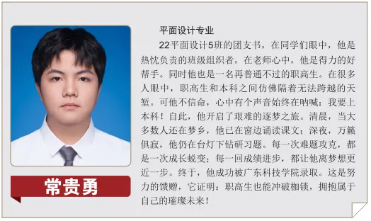 1.升学通道:本专业学生可通过考取美术基础证等条件,直接考取本科院校继续学习深造;还可通过“3+证书”、自主招生、参加技能竞赛等多种方式升入高职院校。另外,本专业与东莞职业技术学院合作完成中高职三二转段贯通衔接培养人才,三年后通过阶段考试后直接进入东莞职业技术学院深造。