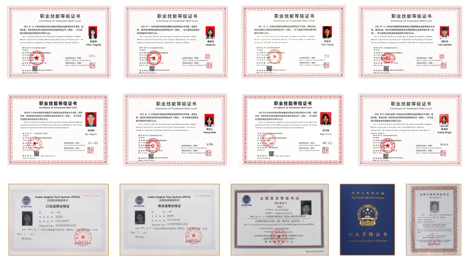 5.技能证书:智能仓储大数据分析职业技能等级证(初级)、全国计算机等级证书、全国英语一级证书、1+X职业生涯规划证书等。