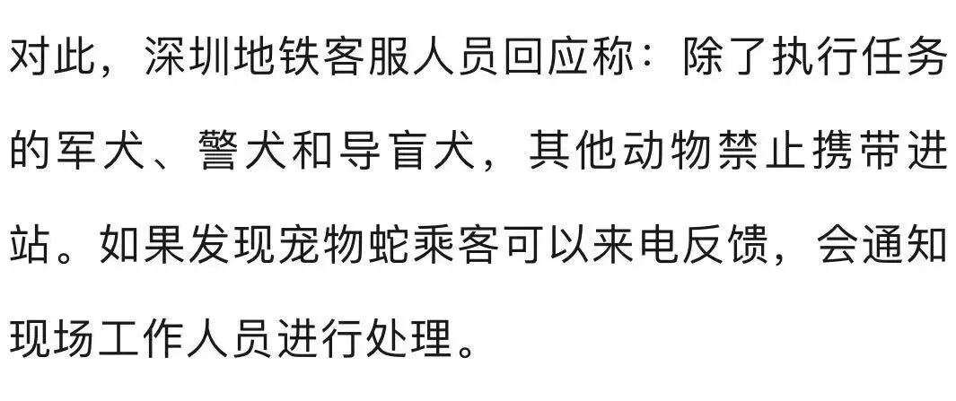 >深圳地铁车厢两女生掏出活蛇玩耍,被乘客举报!地铁最新回应:除军犬警犬和导盲犬,其他动物禁止携带