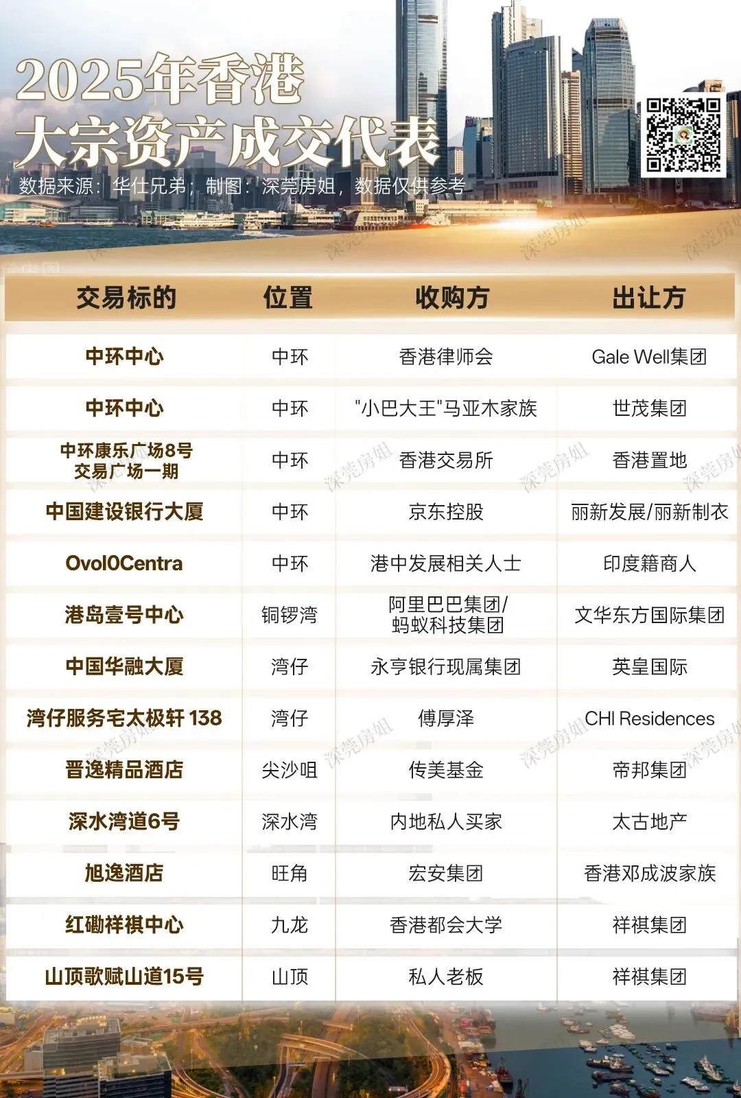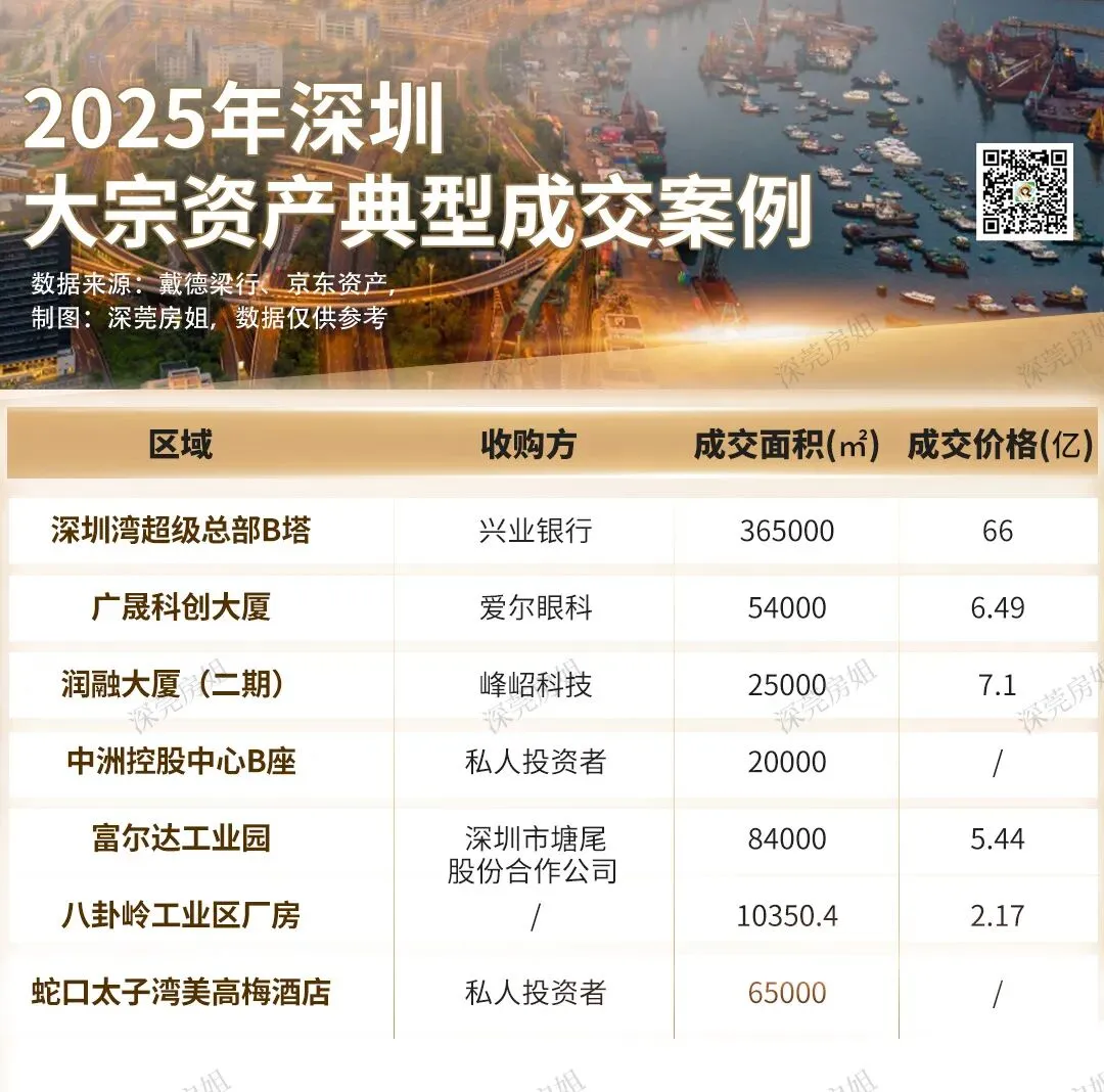 可见,市场活跃动荡,挑战与机遇并存。在深圳这个超2000万人口的超级城市,资本并未离场,只是在更聪明地重新集结。写在最后:2025年,顶级玩家正在重划赛道。纵观全国大宗市场,交易质量稳步提升,市场供应显著放量。莞深工业厂房法拍热烈,物流仓储成交量提升,商业大厦价格低迷;香港成交火热,内资、私人投资人纷纷入局。