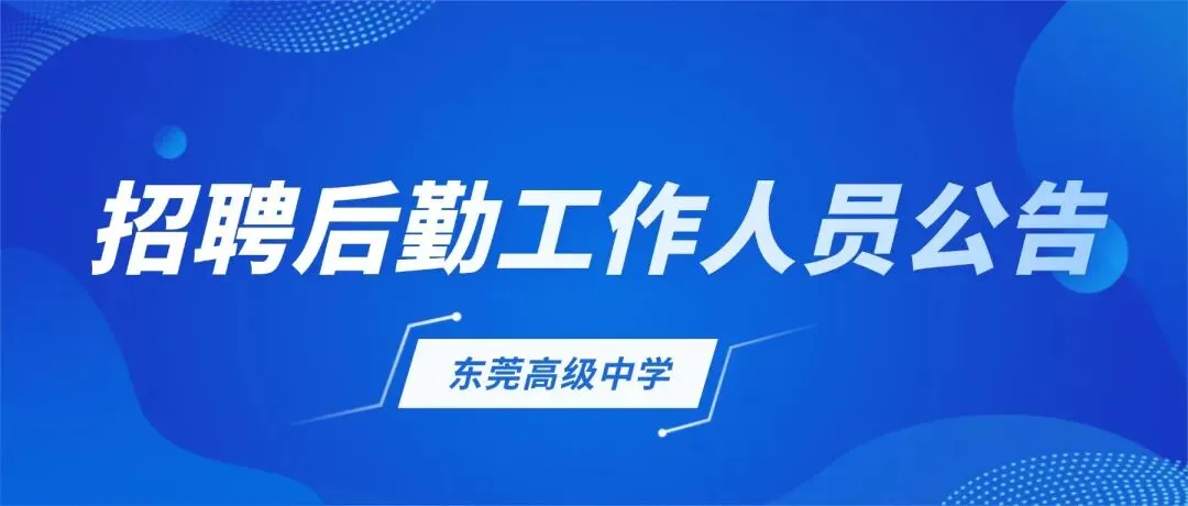 由于工作需要,现面向社会诚聘后勤工作人员1人,工作地点在东莞高级中学(广东省东莞市南城街道伟业路180号)。
