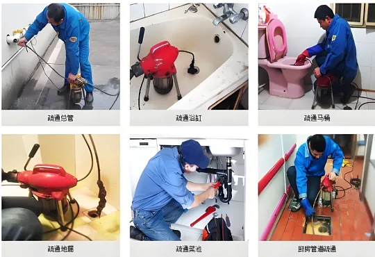 疏通服务:下水道、马桶、蹲厕、地漏、下水管、脸盆、菜盆、墩布池、坐便器、小便池、主管道。