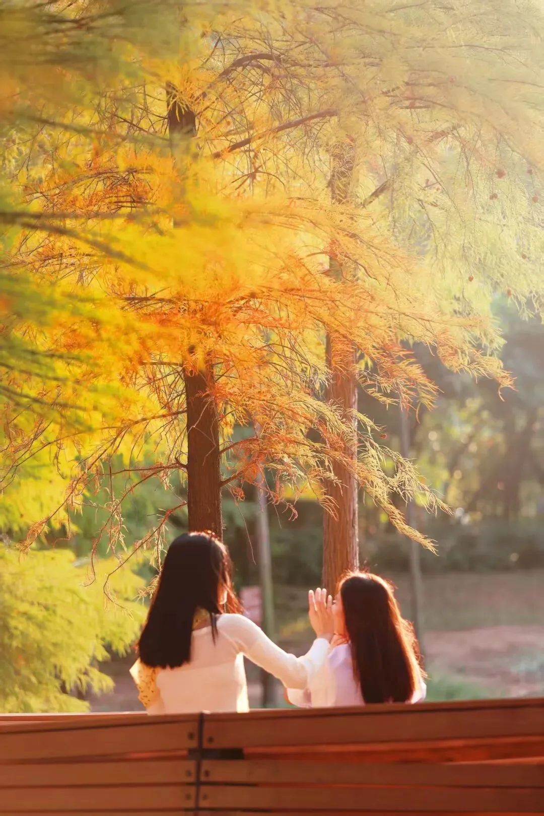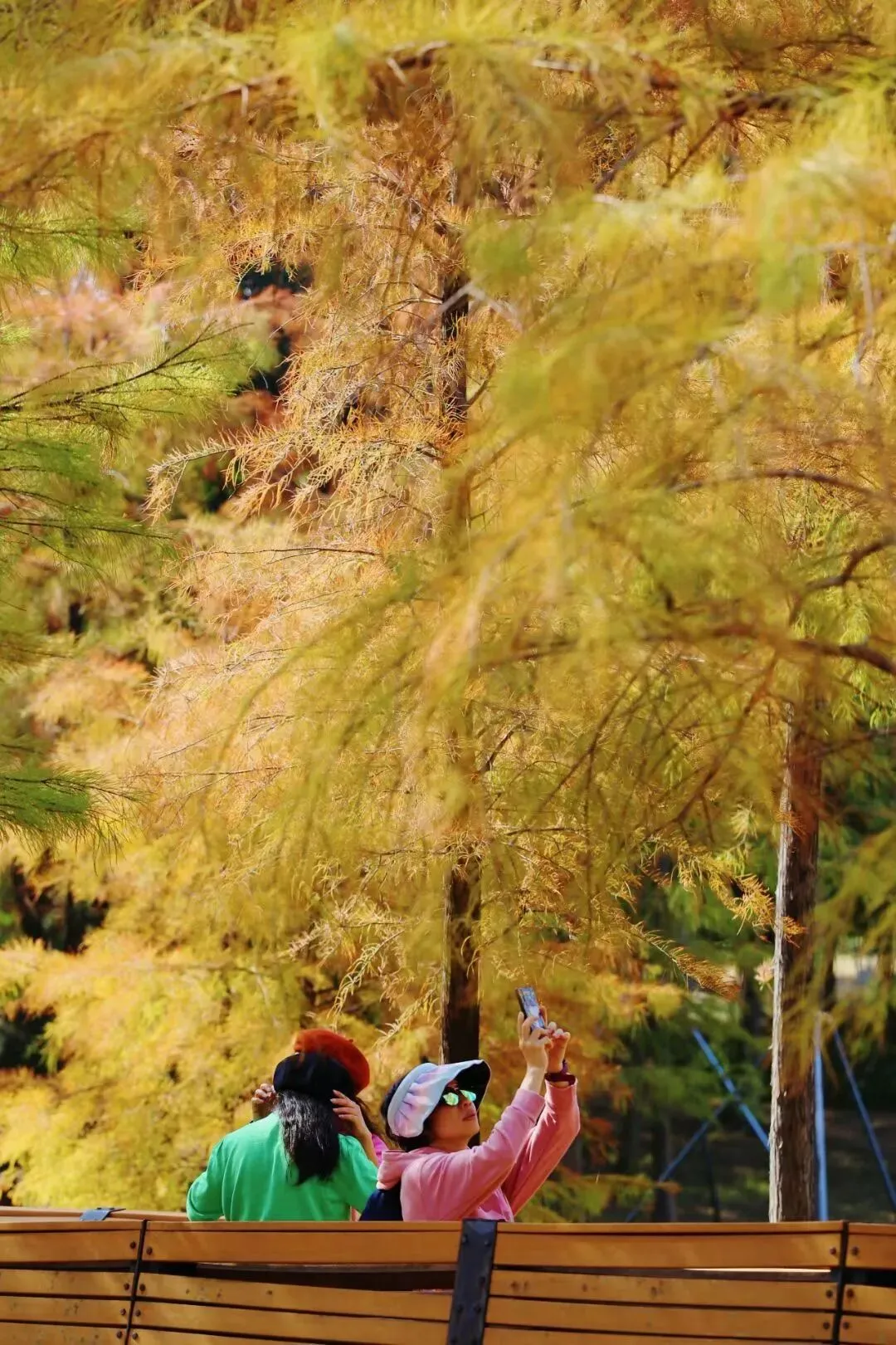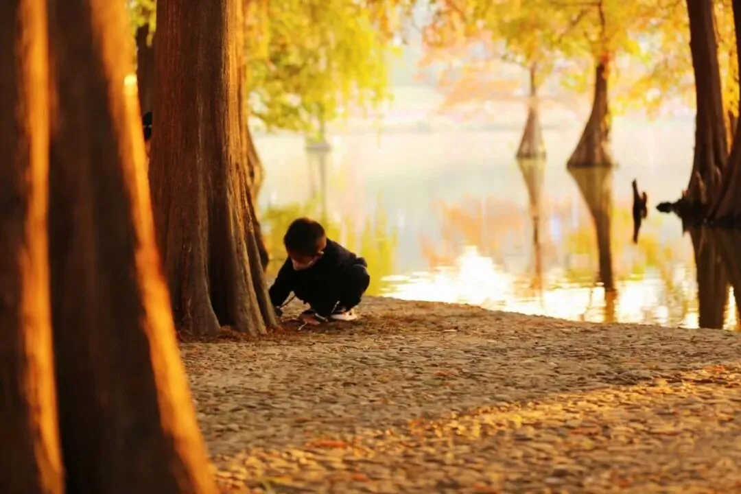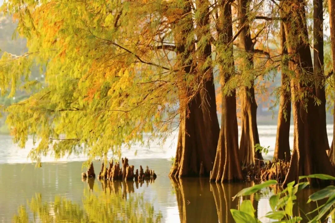 如果你让我推荐,深圳一处观赏落羽杉的地方,一定会推荐洪湖公园。这里拥有深圳历史最悠久,最高大的落羽杉群落,每当岁月年初,公园里的落羽杉枝叶,就逐渐从翠绿变到金黄,再沉淀为层层的焦糖红。