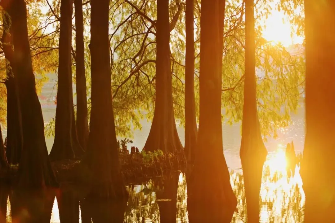 一 洪湖公园:人映斜阳,杉水相依