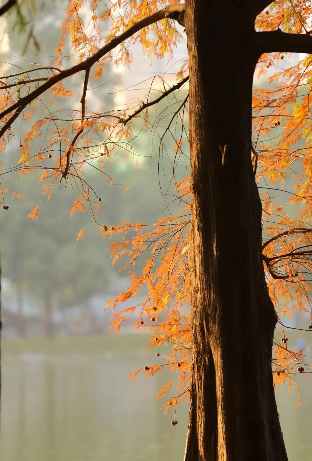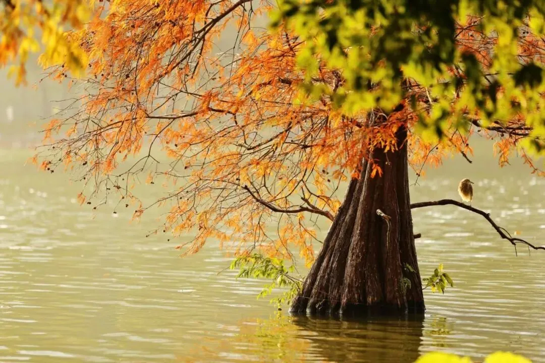落羽杉将橙红染成秋意