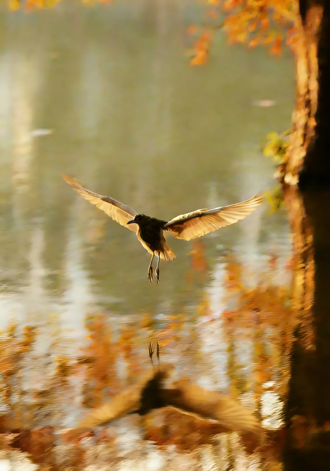 飞鸟掠过湖面