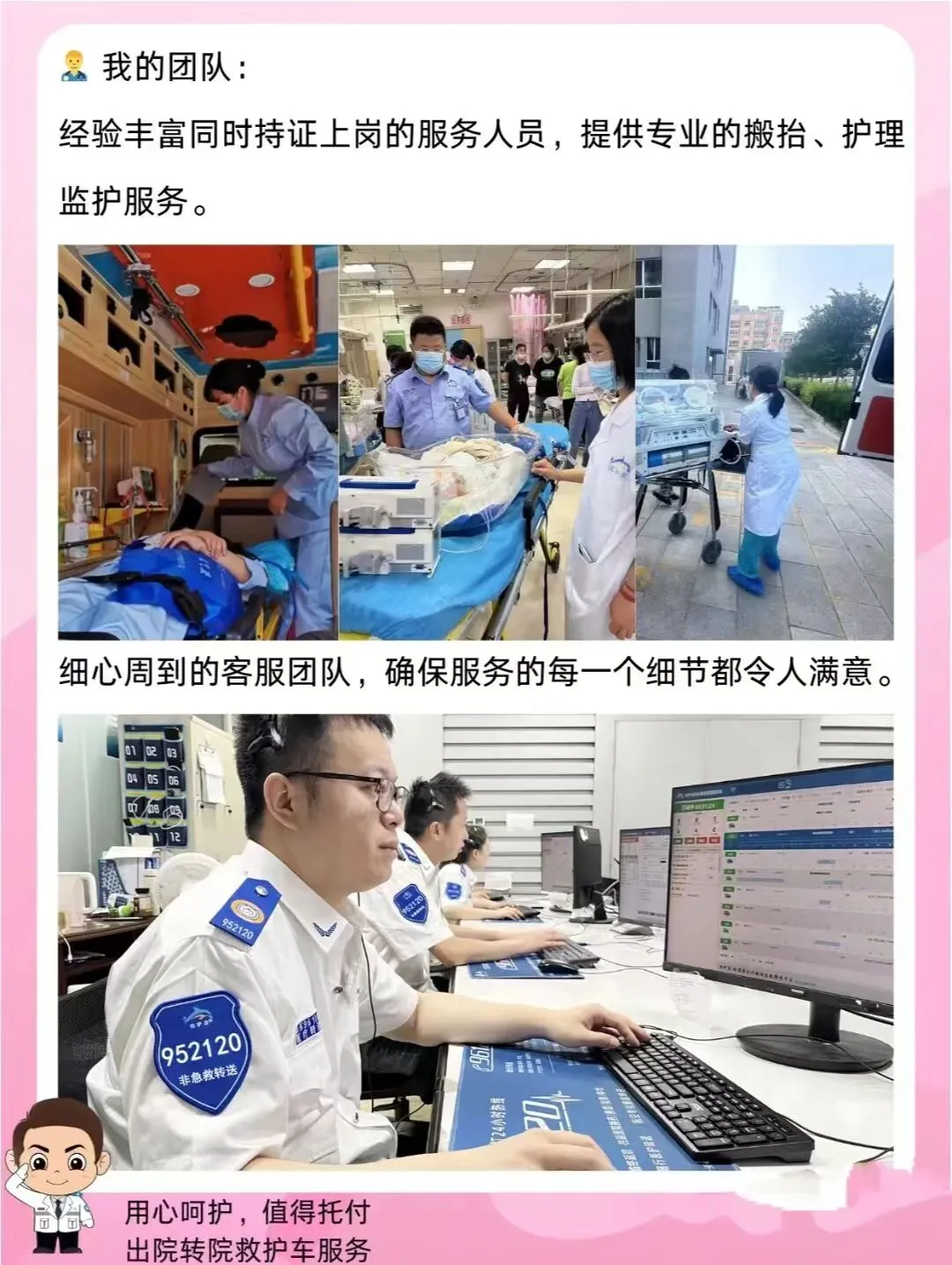 行动不便人群可享受上门接送、途中生活照料与康复辅助服务,轻松解决复查、转院、转诊难题;同时承接老年病患返乡护送、异地就医全程陪护、跨省遗体规范运送等特殊需求。专业医护团队均具备5年以上临床转运经验,救护车标配核心医疗设备并定期维保消毒。收费明码实价拒绝隐形消费,全程保险护航。24小时服务热线:400-1517-120,客服电话:14774727120随时为你提供安心、省心、暖心的转运服务!