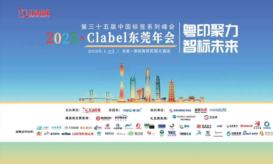 各位亲爱的标签行业的同仁,2025中国标签东莞年会,将于2026年1月23日在东莞厚街海悦花园大酒店B栋4楼国际厅举行,本次年会由红动传媒主办,雅式展览、物联传媒协办,广州浩成科技联合晚宴赞助,以“粤印聚力 智标未来”为主题,诚挚邀请并热烈欢迎标签行业同仁2026年1月23日共聚东莞厚街海悦花园大酒店,共襄年度标签盛宴!