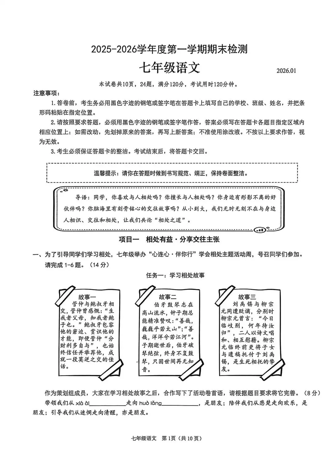 深圳市2025-2026学年七年级上学期期末考试语文试卷
