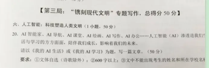 白云区九年级上学期期末作文题《我的AI生活/学习》紧扣时代脉搏,体现了命题的前沿视野。这一题目属于典型的“有我”类作文,要求学生在特定科技主题下进行个人化表达。