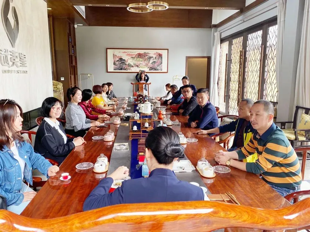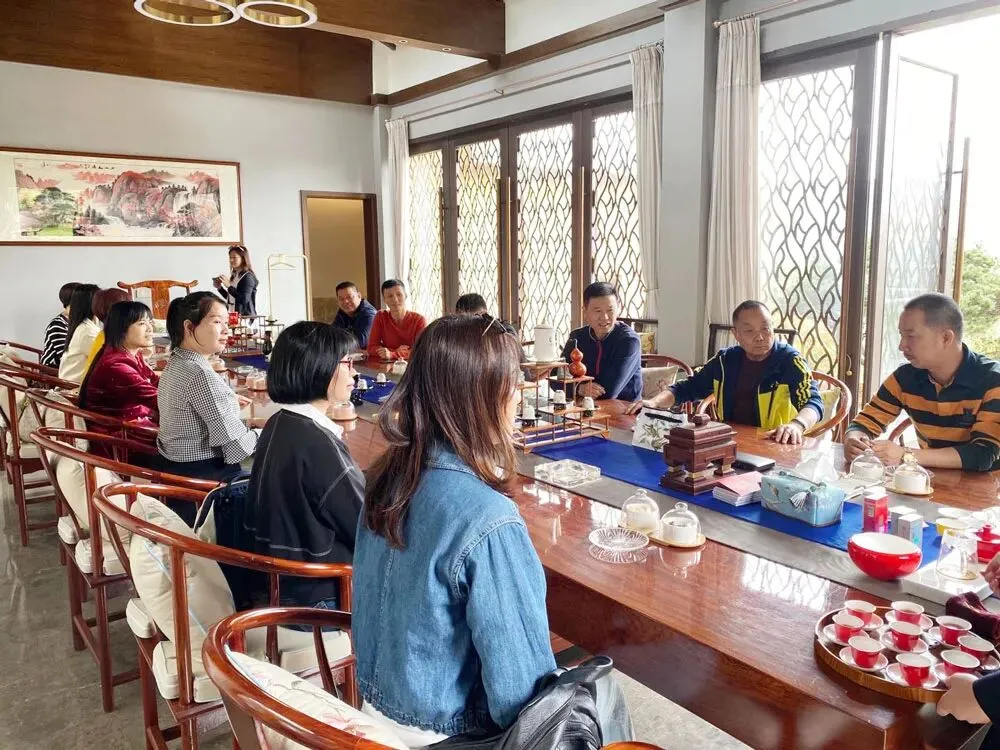 随后,分会领导一行还实地参观考察了武夷山市工商联主席何一心企业—武夷星茶业有限公司。据了解,武夷星茶业有限公司由何一心先生创办于 2001 年 10 月,是集茶叶繁育种植、生产加工、经营销售、科学研究及茶旅观光、文创开发、茶文化传播于一体的农业产业化国家重点龙头企业。