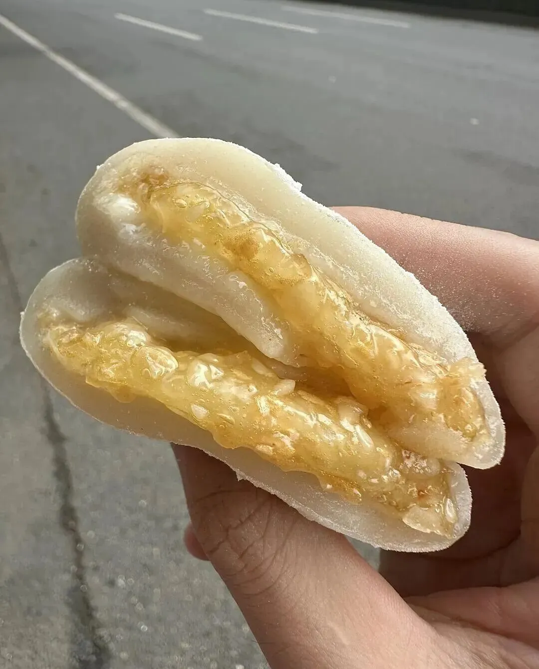 口感真的绝 , 外面酥酥脆脆的 , 里面软糯香甜 , 咬一口能拉丝那种。