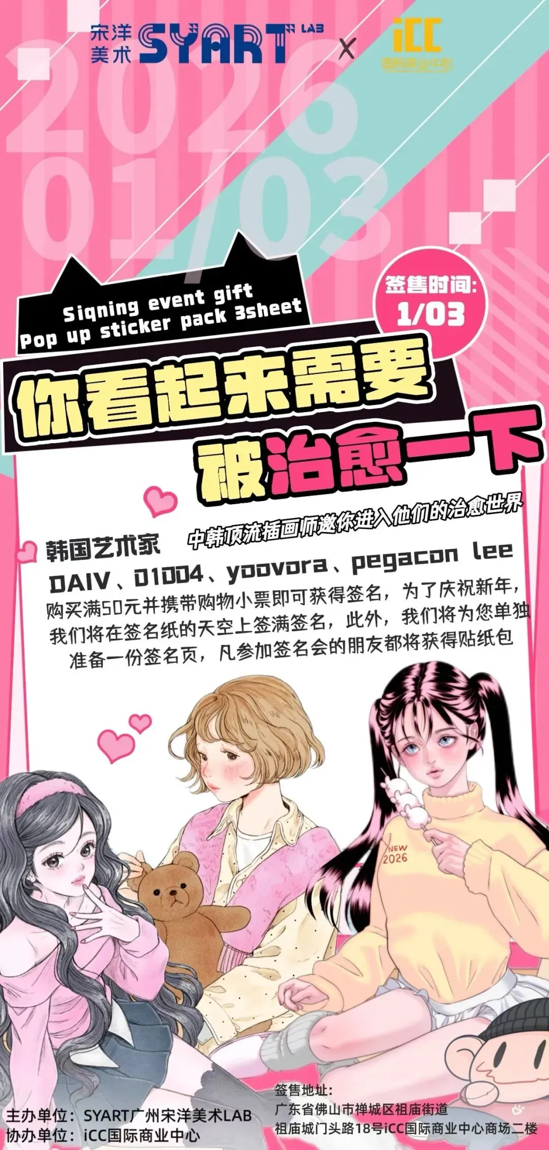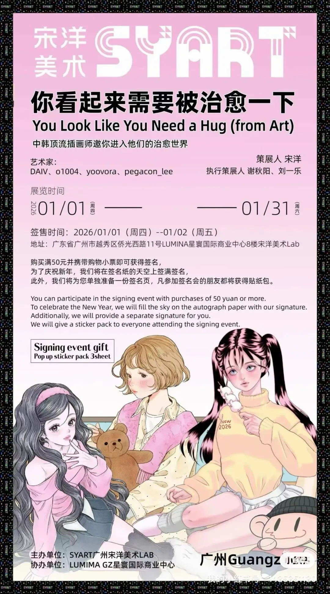 广州宋洋美术馆 | 《 You Look Like You Need a Hug你看起来需要被治愈一下 》中韩顶流插画师艺术展
