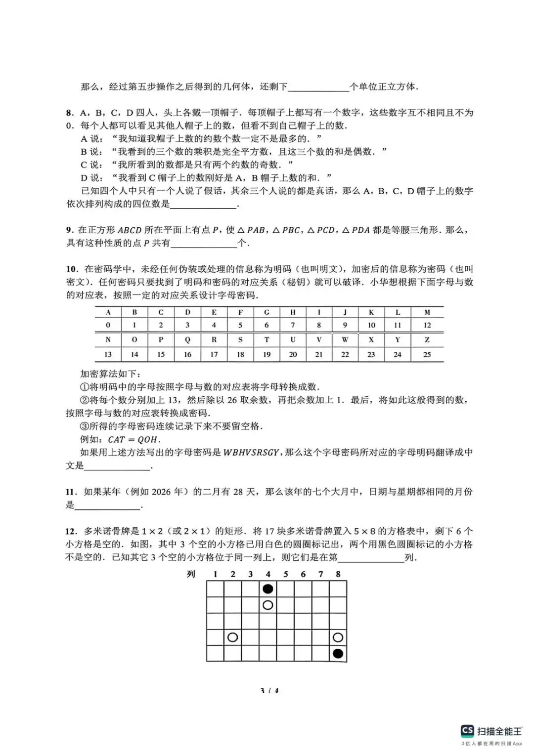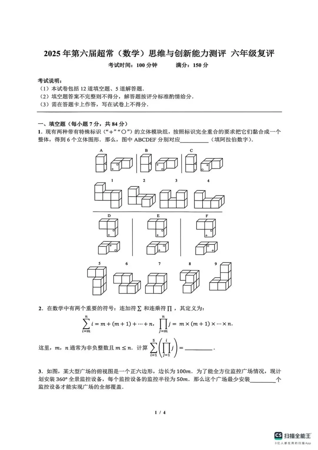 >2025年12月深圳市第六届超常(数学)思维与创新能力测评六年级复评数学试卷