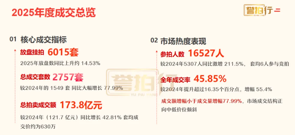 值得注意的是,深圳法拍房市场呈现出与全国不同的特征:2025 年深圳住宅类法拍房挂拍量约 6000 套,较 2023 年增长 18%,全年成交率45.85%,显著高于全国平均水平。这一态势既印证了核心城市优质不动产的抗跌属性,也折射出深圳购房者对法拍房 “捡漏” 机会的精准把握。