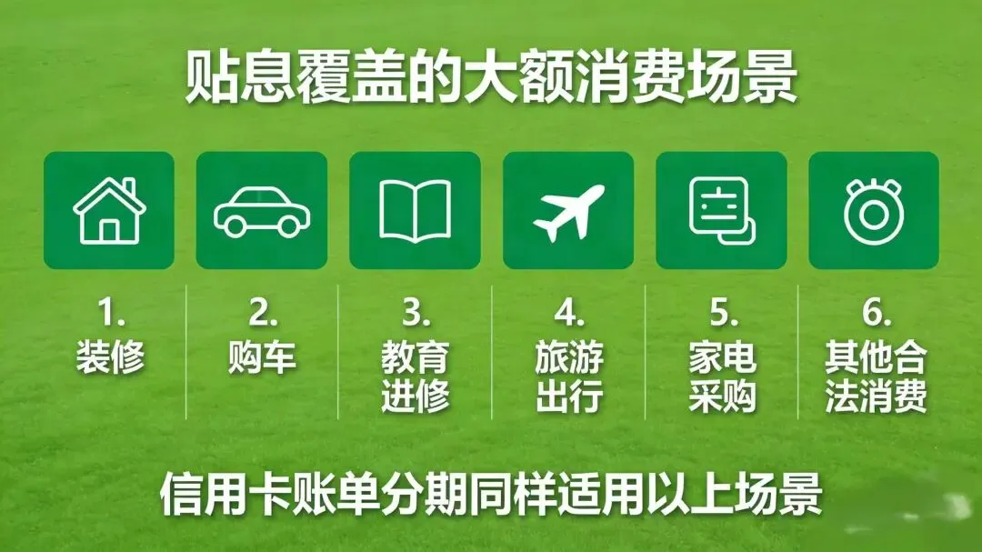 2. 信用卡账单分期也纳入贴息:这是这次最大的亮点之一!以前主要是消费贷,现在你刷信用卡分期买手机、装修、旅游,也可能享受贴息。